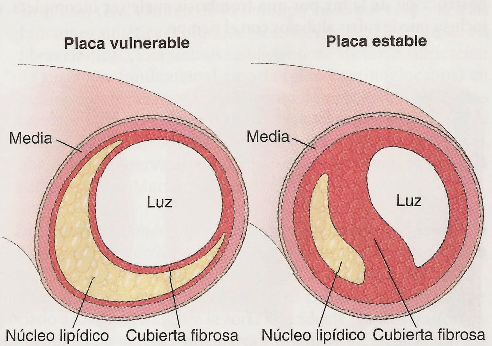 Existe marcada diferencia en el riesgo según el tipo de placa: vulnerable vs. estable
